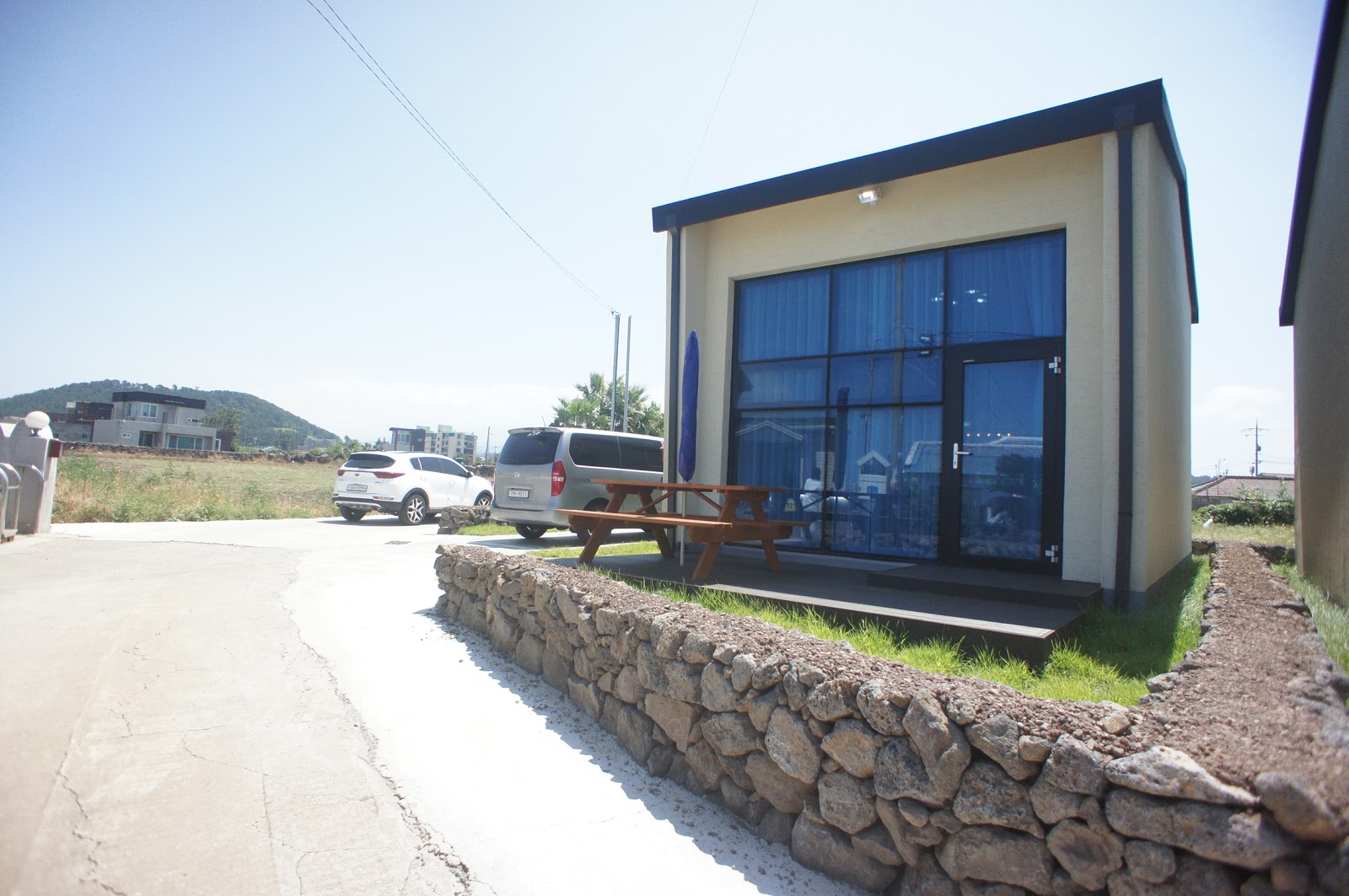 1층 공용욕실계단실 아래 펜트리와 세탁기 공간이층으로 올라가는 계단2층 공용욕실2층 방12층 방1 앞에 넓은 테라스가 있습니다.2층 방 22층 방2에서 보는 한라산2층 방2에서 보는 한라산